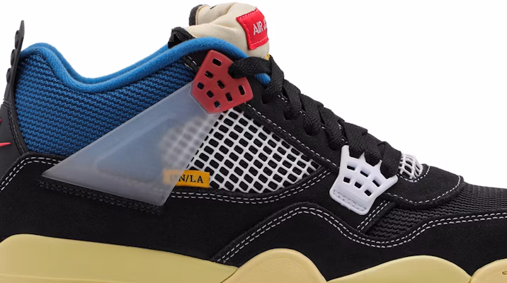 Introducing the Union LA x Air Jordan 4 Retro Off Noir sneakers, a collaboration between Jordan and Union. These stylish sneakers come in a sleek blue color and have been seen worn by celebrities like William Chan. With its retro design and unique features, the Off Noir sneakers are a must-have for any sneakerhead looking to make a fashion statement.