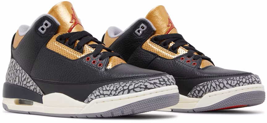 The Air Jordan 3 Black Gold (WMNS) sneakers by Jordan are the perfect combination of style and comfort. These black and gold sneakers are designed specifically for women and feature the iconic Air Jordan branding. With a sleek and modern design, these sneakers are sure to turn heads wherever you go. Whether you're hitting the gym or just running errands, these Air Jordan 3 sneakers will keep you looking and feeling your best.