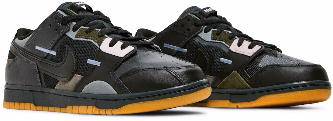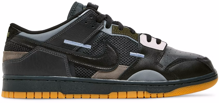 The Nike Dunk Low Scrap Black Gum sneakers feature a sleek black design with a contrasting gum sole. Designed by Nike, these shoes are perfect for both casual and athletic wear. The low-top style provides comfort and flexibility, while the durable construction ensures long-lasting performance. This versatile sneaker is a must-have for any sneaker enthusiast.