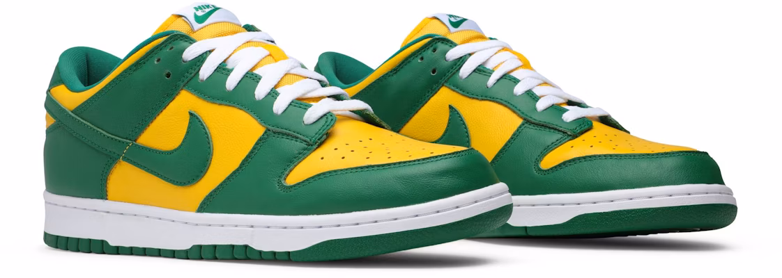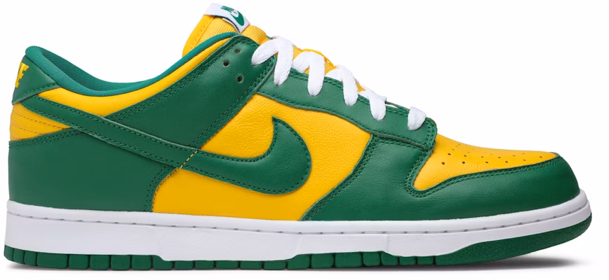Introducing the Nike Dunk Low SP Brazil 2020, also known as the Brazil edition. Designed by Nike, this stunning sneaker features a vibrant yellow colorway that pays homage to the iconic Brazilian soccer team. With its high-quality construction and stylish design, this shoe is a must-have for sneaker enthusiasts and sports fans alike.